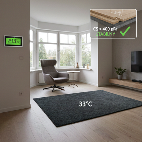 Wniosek praktyczny: na „podłogówkę” wybieraj podkłady o możliwie niskim R, to kluczowy parametr.
