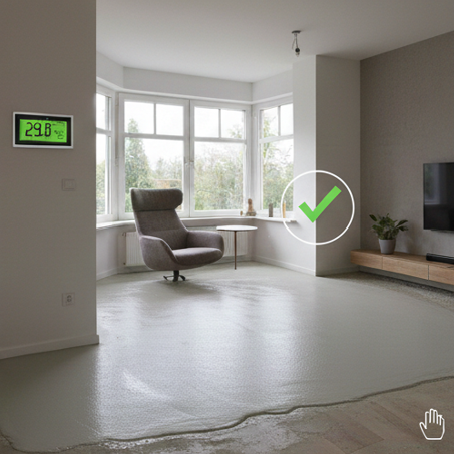 Progi rzędu 1,8 CM% (cement z podłogówką) i 0,3 CM% (anhydryt z podłogówką) - trzymaj się wartości z instrukcji.